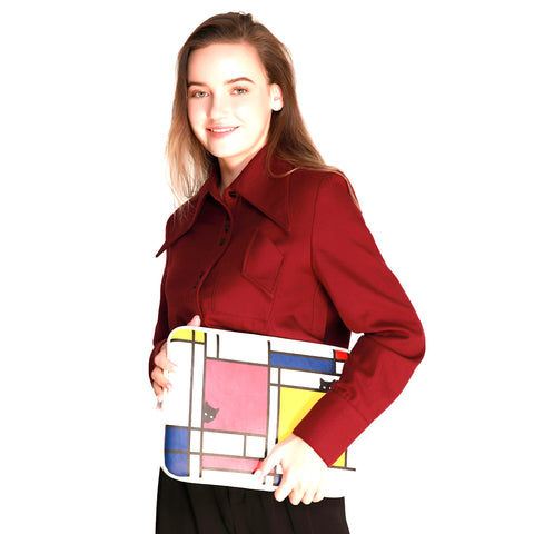 OZADE Piet Mondrian Style PU Leather Laptop Sleeve Bag for 13-13.3 MacBook Pro,MacBook Air,Surface Pro,Surface Laptop,Surface Book,Notebook Tablet iPad Tab,Waterproof Bag,Fashion Gift,Cat(Mondrian 1)