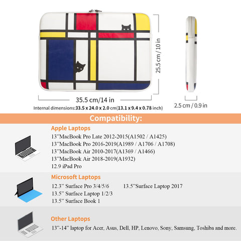 OZADE Piet Mondrian Style PU Leather Laptop Sleeve Bag for 13-13.3 MacBook Pro,MacBook Air,Surface Pro,Surface Laptop,Surface Book,Notebook Tablet iPad Tab,Waterproof Bag,Fashion Gift,Cat(Mondrian 2)