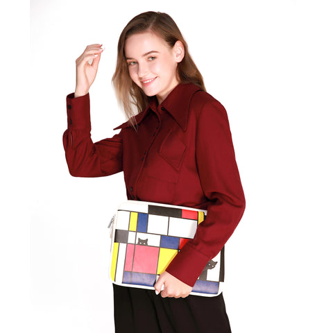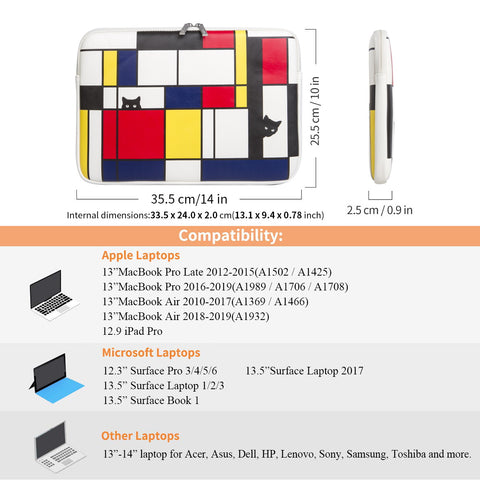 OZADE Piet Mondrian Style PU Leather Laptop Sleeve Bag for 13-13.3 MacBook Pro,MacBook Air,Surface Pro,Surface Laptop,Surface Book,Notebook Tablet iPad Tab,Waterproof Bag,Fashion Gift,Cat(Mondrian 3)