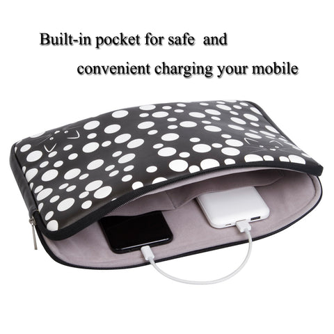OZADE Yayoi Kusama Style PU Leather Laptop Sleeve Bag for 13-13.3 MacBook Pro,MacBook Air,Surface Pro,Surface Laptop,Surface Book,Notebook Tablet iPad Tab,Waterproof Bag,Fashion Gift,Cat(Black White)