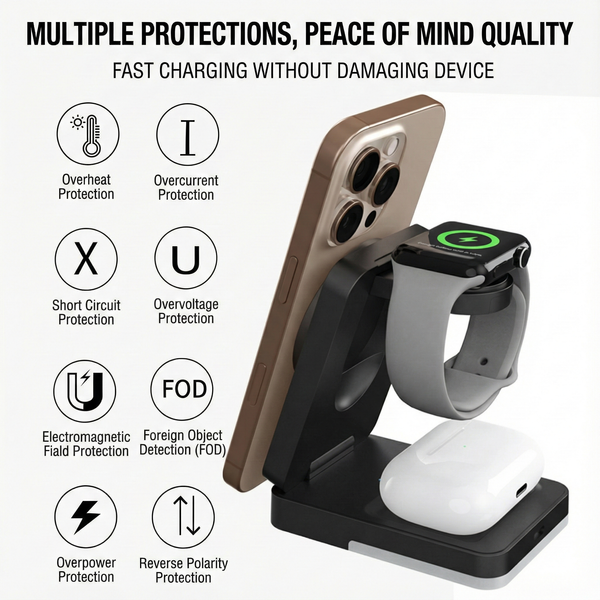 [Highly Compatible] : Perfect 3 in 1 charging dock for Apple , Compatible with iPhone 16e/16/16 Plus/16Pro/16 Pro max15/15 Plus/15Pro/15 Pro max/14/14 Plus/14Pro/14 Pro max/13/13Pro/13Pro Max/13 mini/12/12Pro/12Pro Max/12 mini/11/11Pro/11Pro Max/XS/XR/XS MAX/X/8/ 8Plus & Apple iWatch 10/9/8/7/6/5/4/3/2/SE/Ultra 1/2 & AirPods Pro2/Pro/4/3/2(Note:Airpods Only Support Mag-Safe Charging Case)